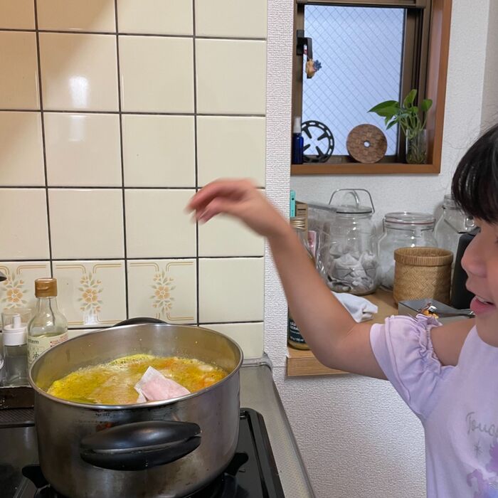 こうすることで無駄もなくなるし、洗い物をするときにも楽になるんだよと時には主婦の知恵も伝えながらお料理を。