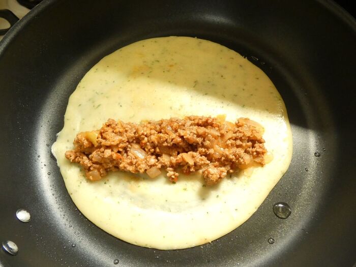 今回は具を包みましたが、全て生地の上からかけてもOKです。