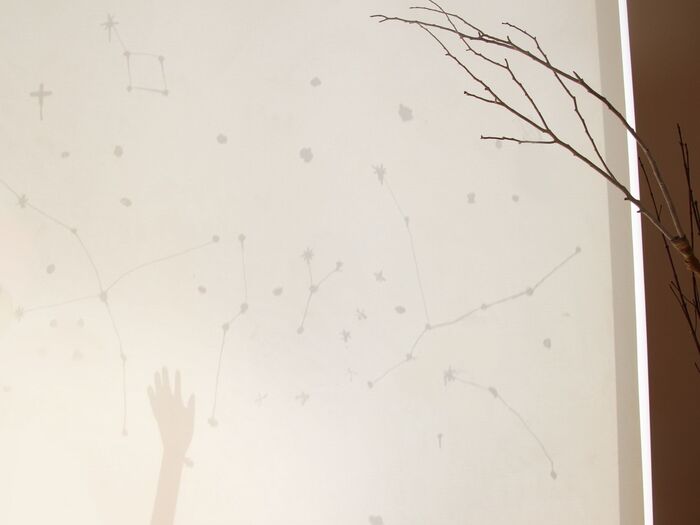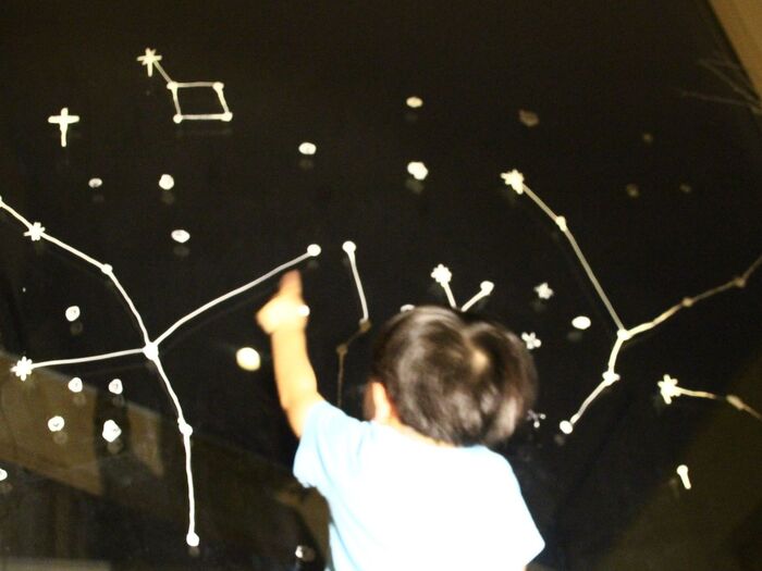 大小の星をたくさん描きます(惜しまずたっぷり使って描くと後々剥がしやすいです)