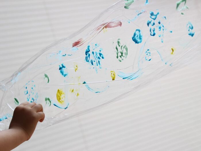 もちろんラップから剥がして窓にペタペタ貼ることもできます^_^これも楽しい!