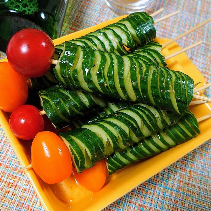蛇腹にした事で、味がサッと染み込み少量のタレで済みます✌
