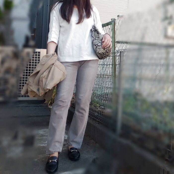 ちなみにワンサイズ下を勧められたのですが、ムチムチ感が否めなかったので1番大きいサイズに(^^; デニムは太ももがパンパンだと太って見えますよ。