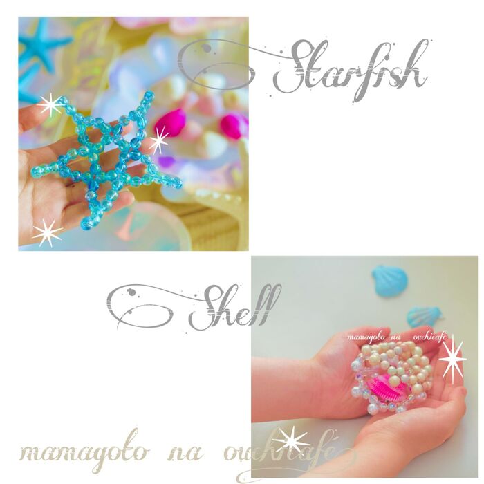 スターフィッシュやシェルが、おうちcaféにてままごとしながら海のお姫さま気分になれそうなアイテムにに変身しました・・・とさ╹▽╹