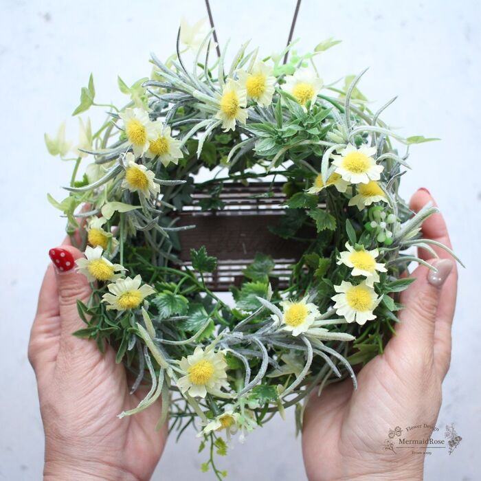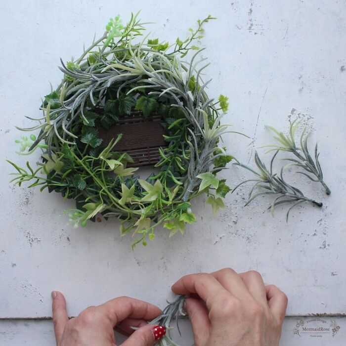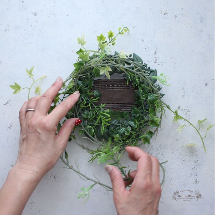 リースのサイズに合わせてガーランドでリースを作ります