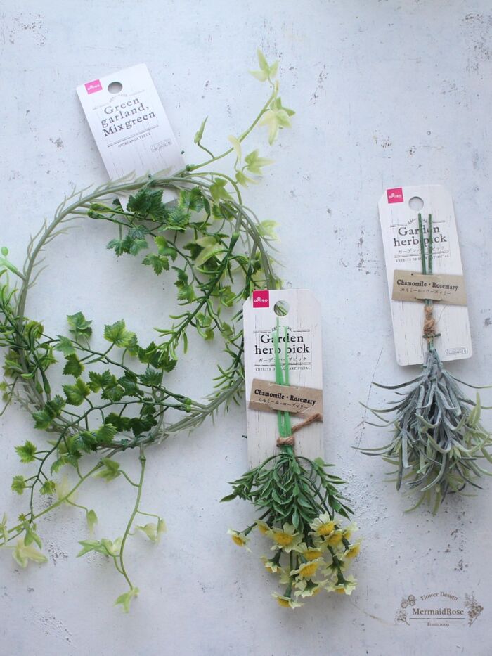ダイソーのグリーンガーランドとピック2種