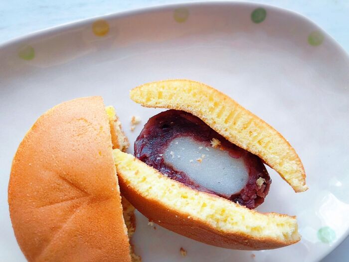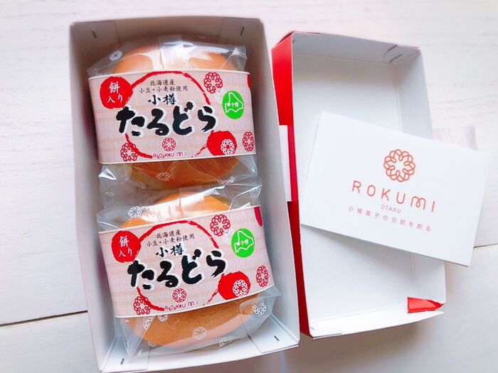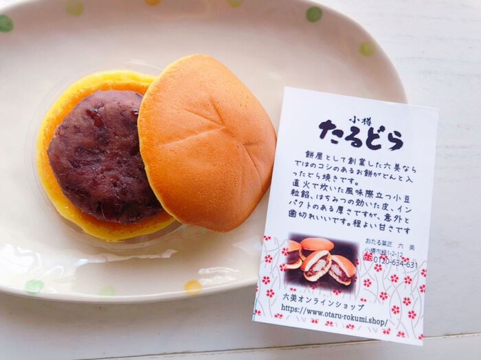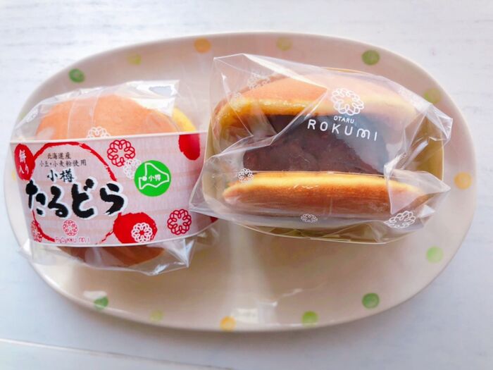 小麦粉も北海道産ではちみつ入りの皮はふわっとしっとり〜柔らかく弾力のあるお餅に見た目も個性的な美味しい小樽のどら焼きです♡