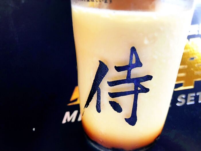たっぷりプリンのガラス容器に侍の筆文字が凛々しい★