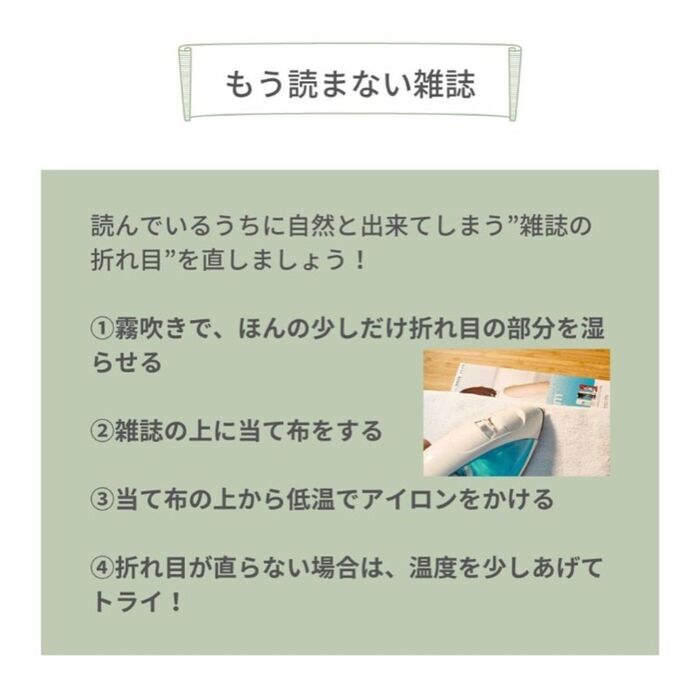 アイロンの温度は「弱」から試して、焦げたりしないよう様子を見ながら行いましょう。