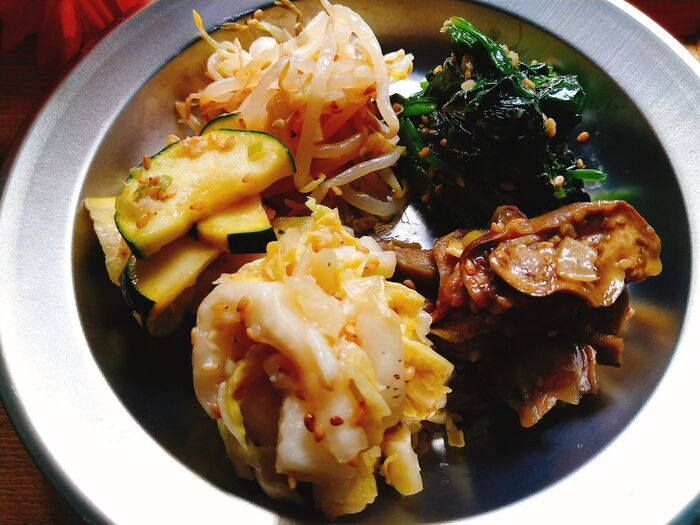 今回は5種類のナムルを作りました。季節野菜をナムルにして気を