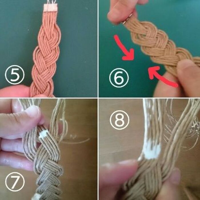 ⑤5本並べた状態を維持していきながら、三つ編みしていきます。