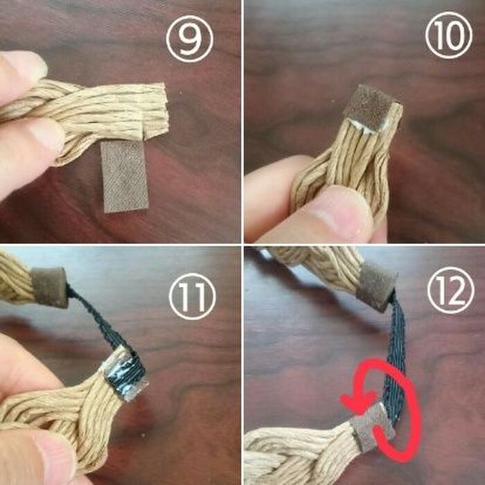 ⑦編み終わりもボンドでくっつけて行きます。