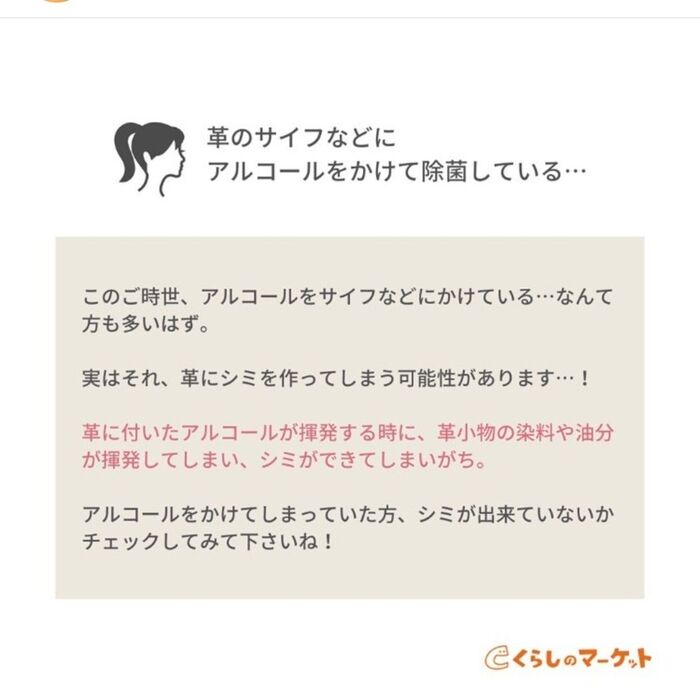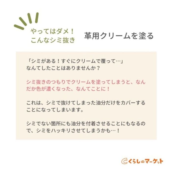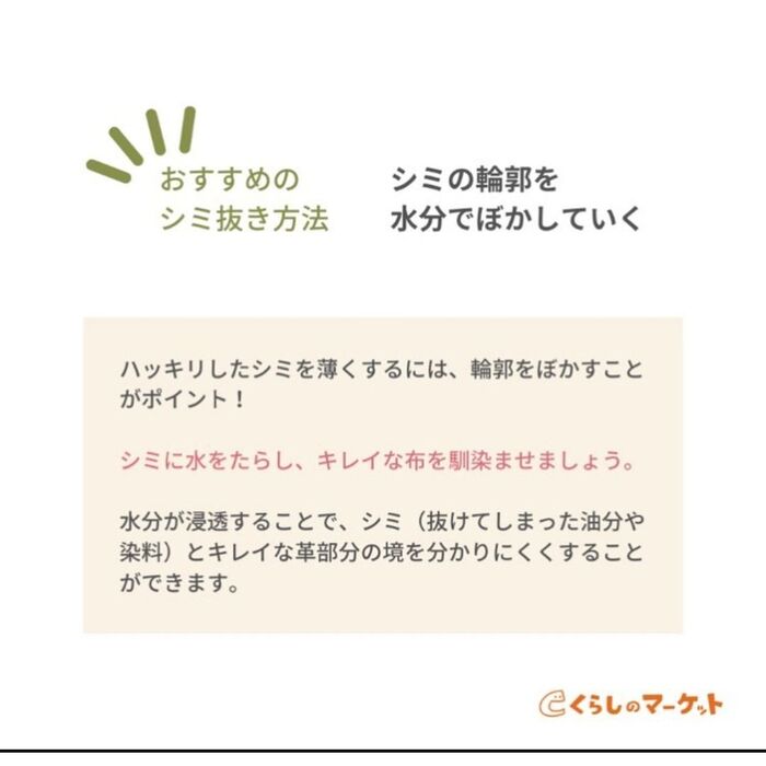 必ず事前に目立たないところで素材にシミやダメージがないか確認してから行いましょう。