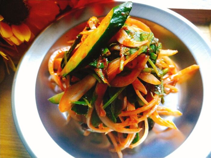 冷麺の上に乗せたり、焼き肉と一緒に食べたり、サラダとしても。
