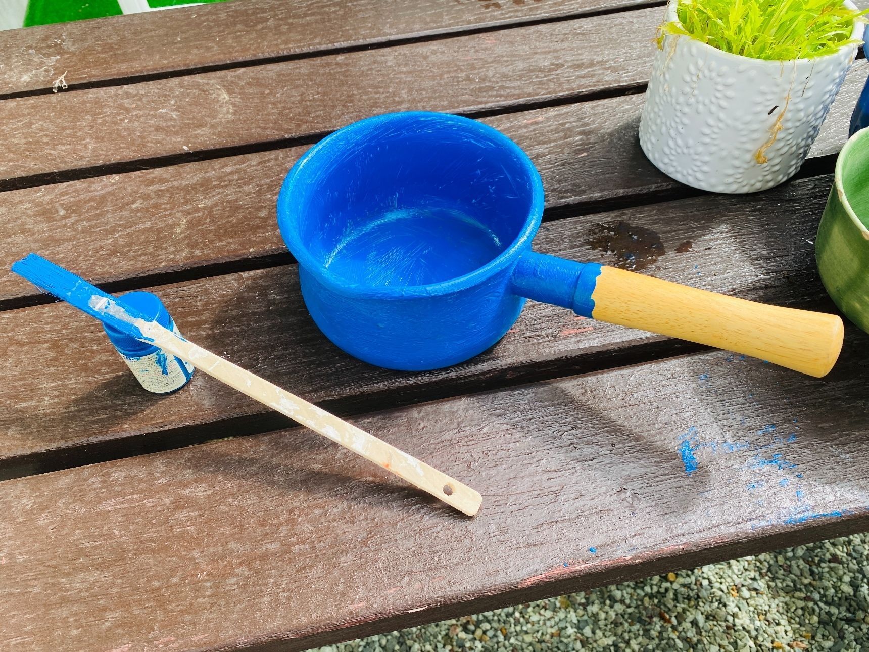 青色のペンキで塗って乾かします。