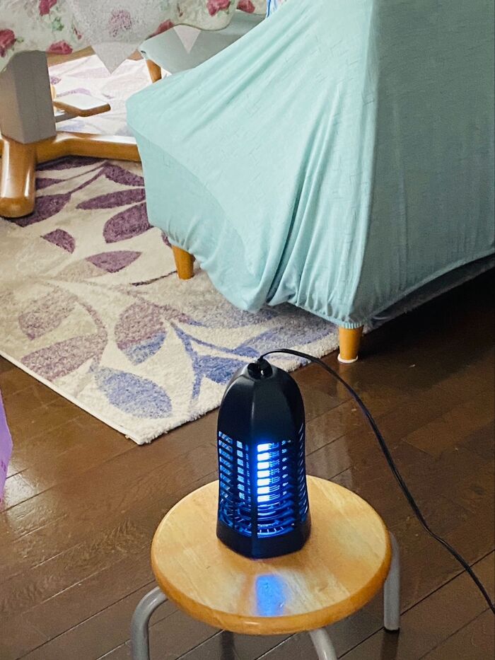 この電撃殺虫灯は、害虫が好む光の波長で虫を誘い、瞬間的に感電死させます。