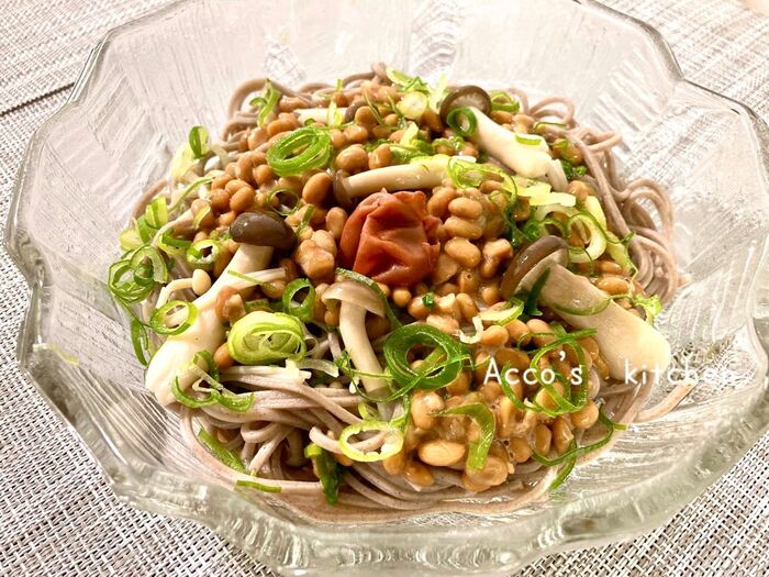そば+納豆+キノコの組み合わせで、元気回復⤴︎⤴︎