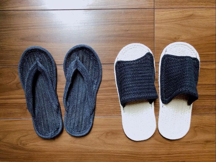 鼻緒タイプと前あきタイプ、私にはどちらも手離せないルームサンダルです。