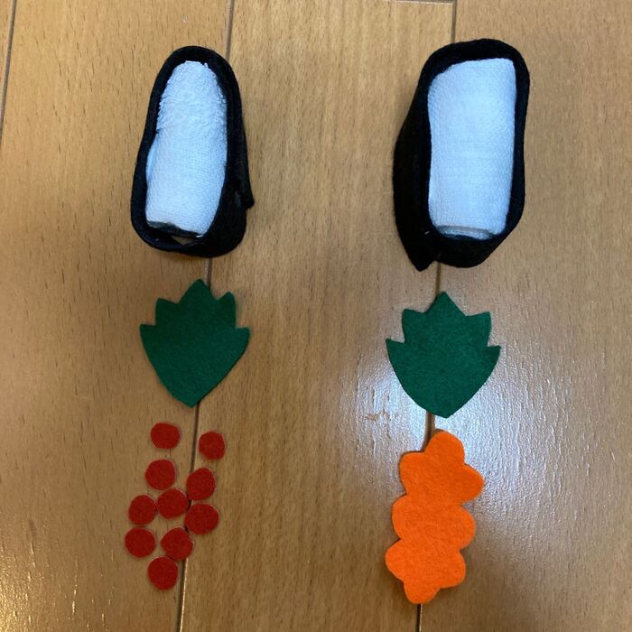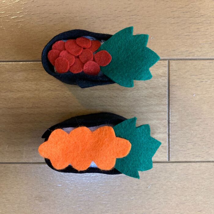 他にピンクのフェルトで、たらこの軍かんや、赤いフェルトでネキトロなども出来ると思います。