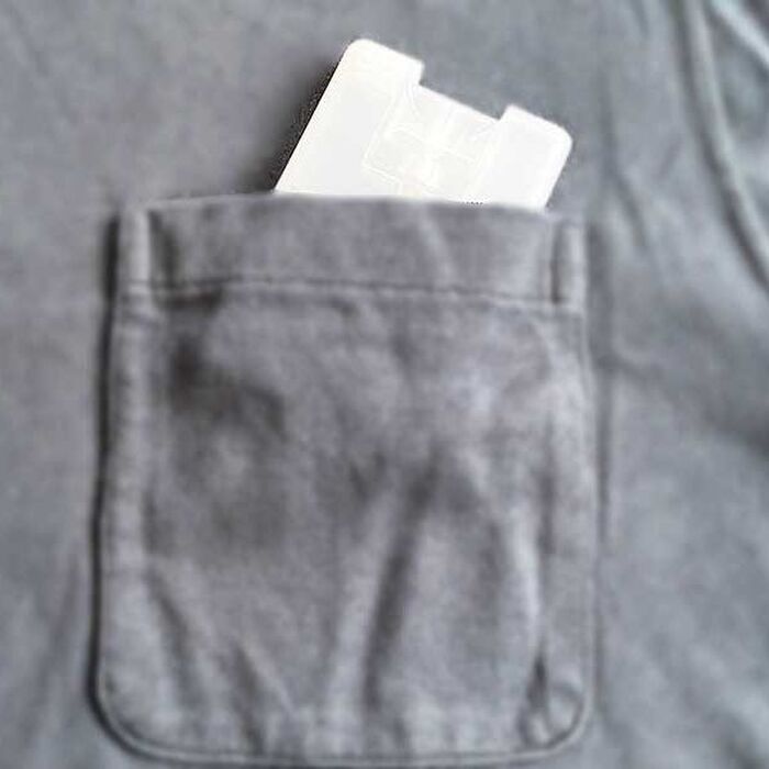カード型になると、スプレーボトルはワイシャツやTシャツの胸ポケットにも入れやすく、ふくらみも抑えられます。