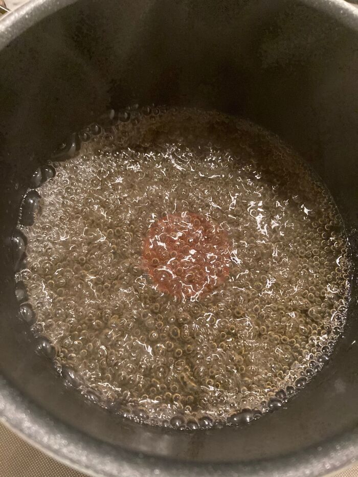 鍋にみりん、水、白だし、粉末寒天を入れて、沸騰させます。