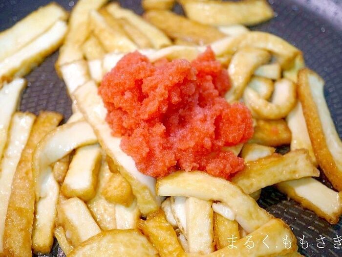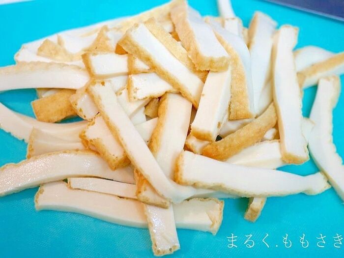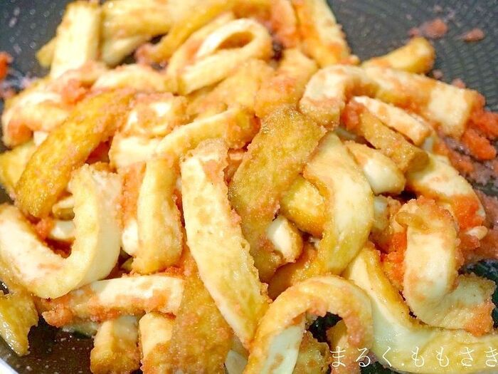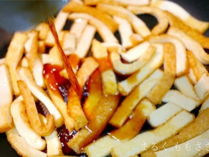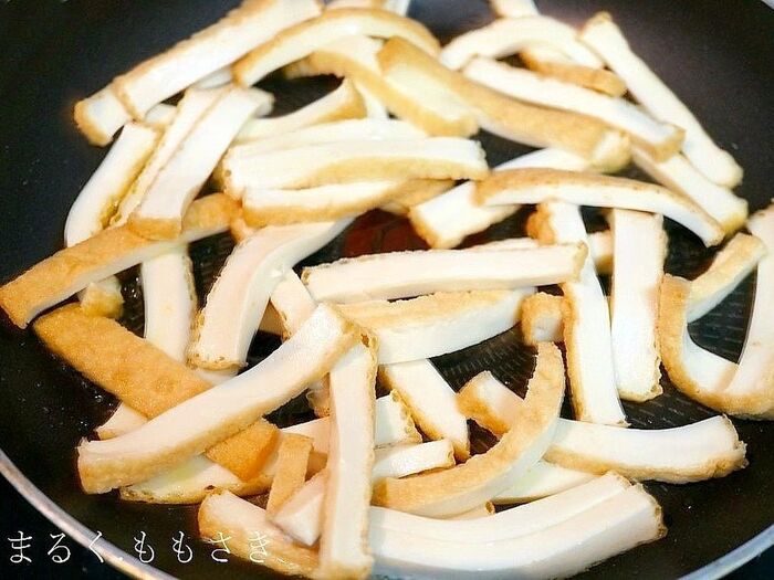※はじめ厚揚げに片栗粉をまぶし炒めたら、