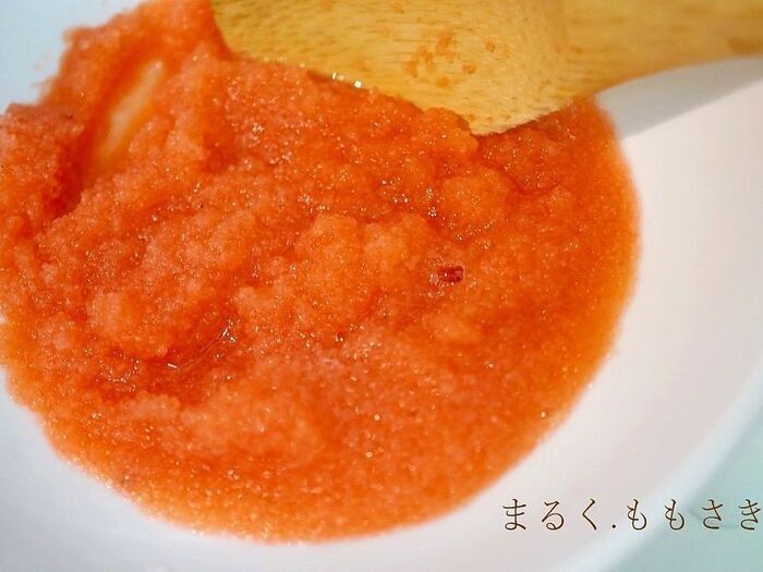 ●たらこは皮を取り除き、酒をいれ混ぜる。(私は中身だけのたらこを使用)