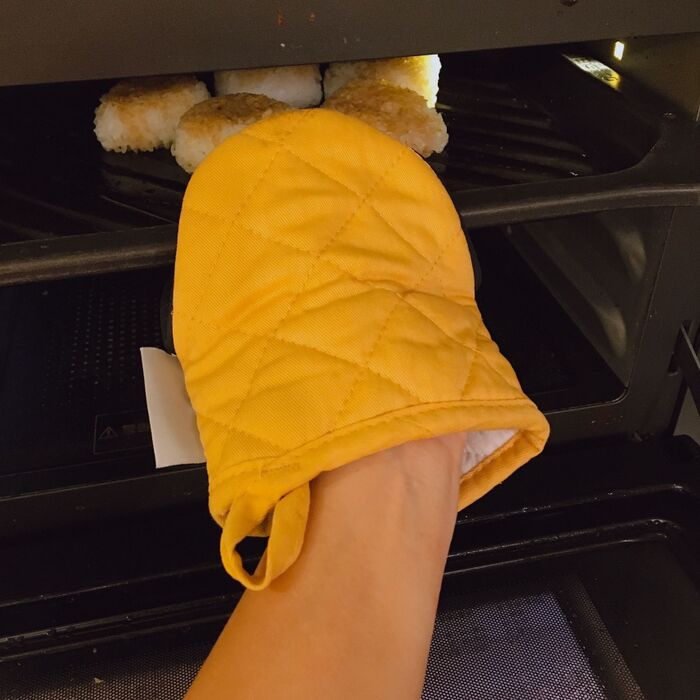 オーブンから出すときは一人でギャーギャー騒いでいましたが、