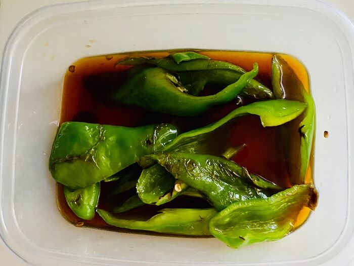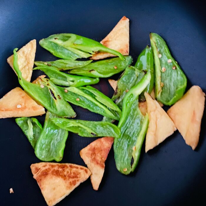 甘南蛮万願寺とうがらしがしんなりするまで、両面焼きます。
