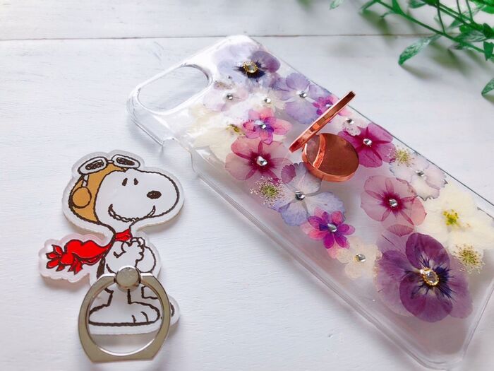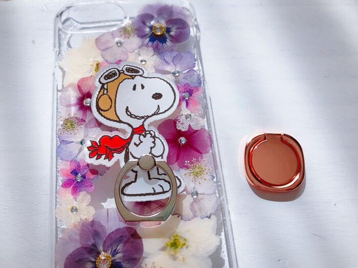 プレゼントしてもらったスヌーピーのスマホリングを付けたくて選んだスマホケースでしたがパーツに重なり貼れませんでした☆