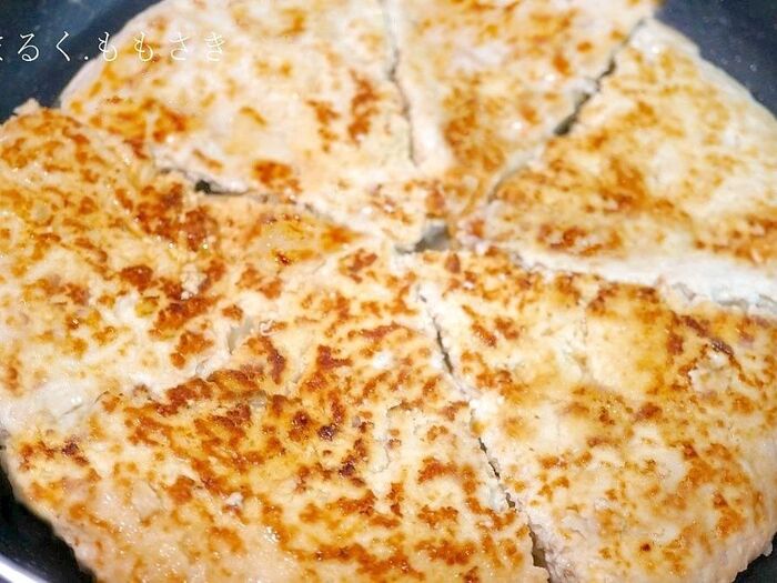温めたフライパンにオリーブオイルを入れ1/2の生地を広げ焼く。