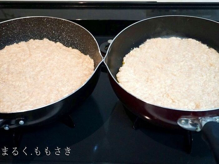 ※我が家は30㎝のフライパン2個に詰め同時にいつも焼きます。