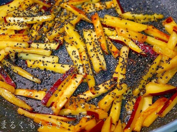 黒ゴマを入れ全体を混ぜたら火を消す。