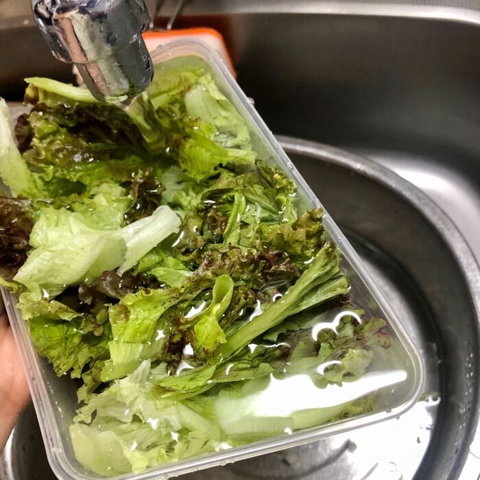 洗ったら、タッパーの蓋をして立たせておくだけです。