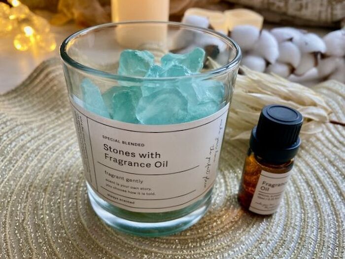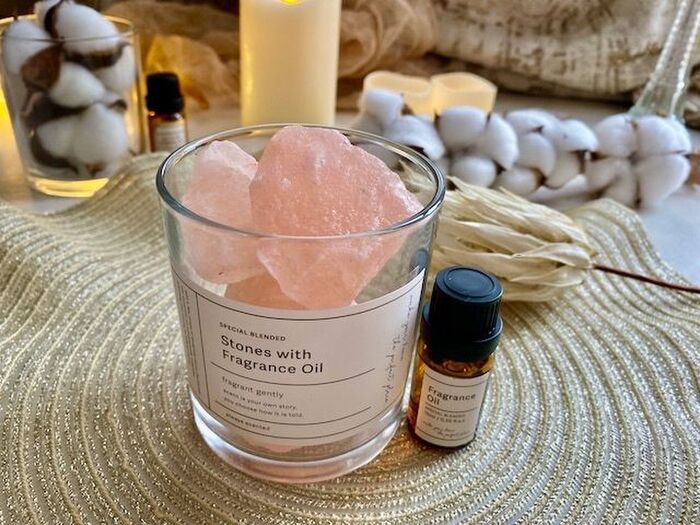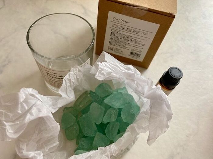 箱を開けてみると グラスと ストーン アロマのボトルが入っています