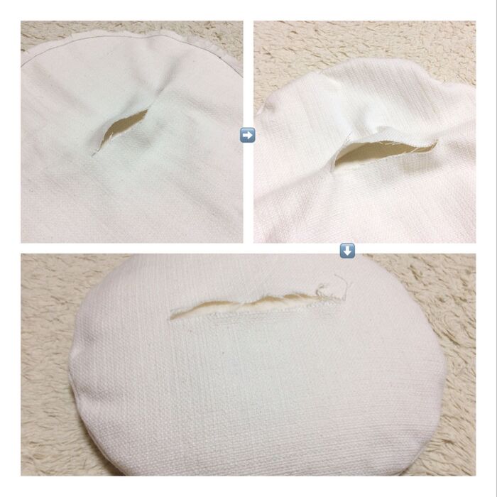 クッションは市販のものでもOK!ここでは、手抜きクッションを作って縫い留めてみました。