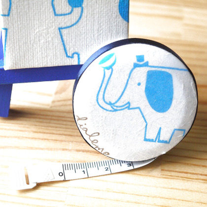 サイドのリボンはほつれてこないように、両面テープを長めに切って、リボンを押し込むところがポイントです。メジャーがスッと出てくるように、しっかり内側に貼り付けてくださいね。