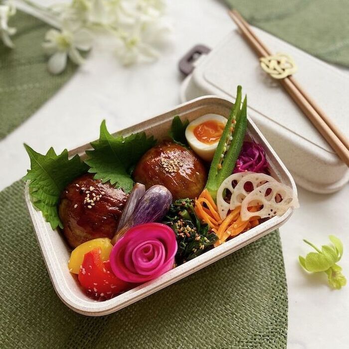 スケーター弁当箱のおかず入れにはしそ 揚げなす みょうが ごま