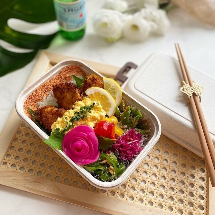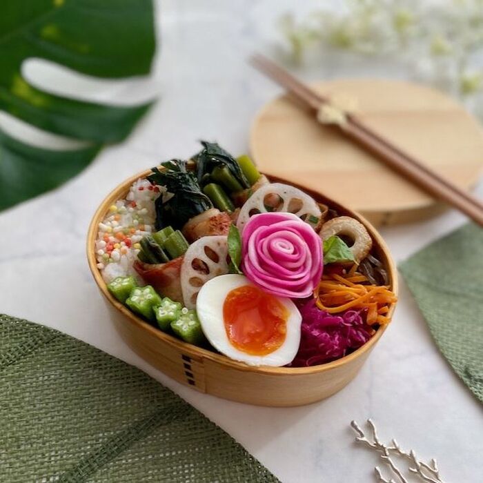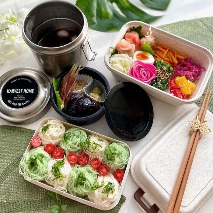 大きいお弁当箱にはくるくる巻いたそうめんと