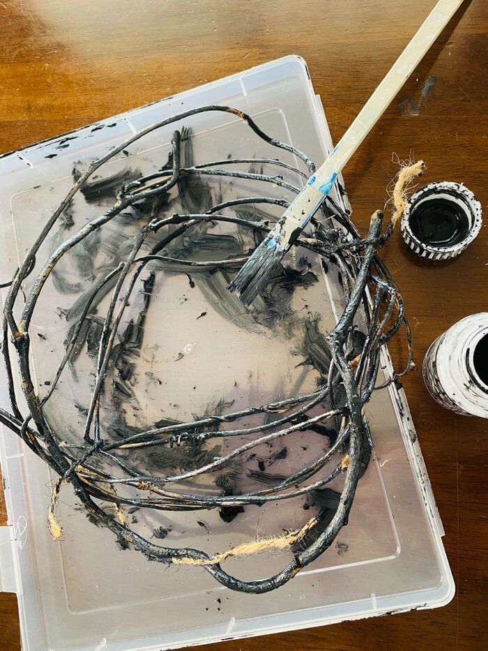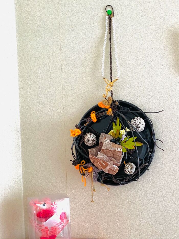 リースに工程1で作ったパーツをリースに結んだり、貼ったりします。