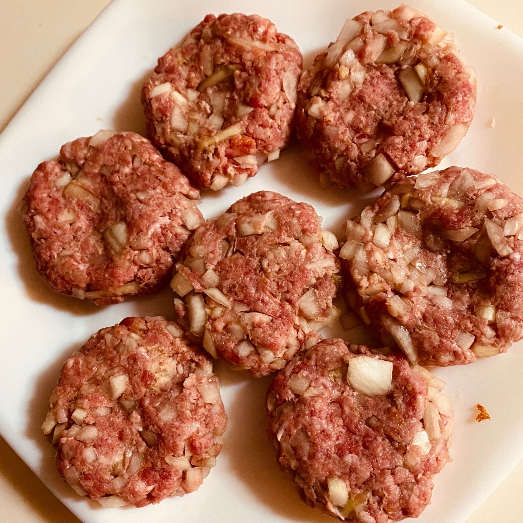 ②ボウルに合い挽き肉、①、卵、牛乳に浸したパン粉、塩胡椒、
