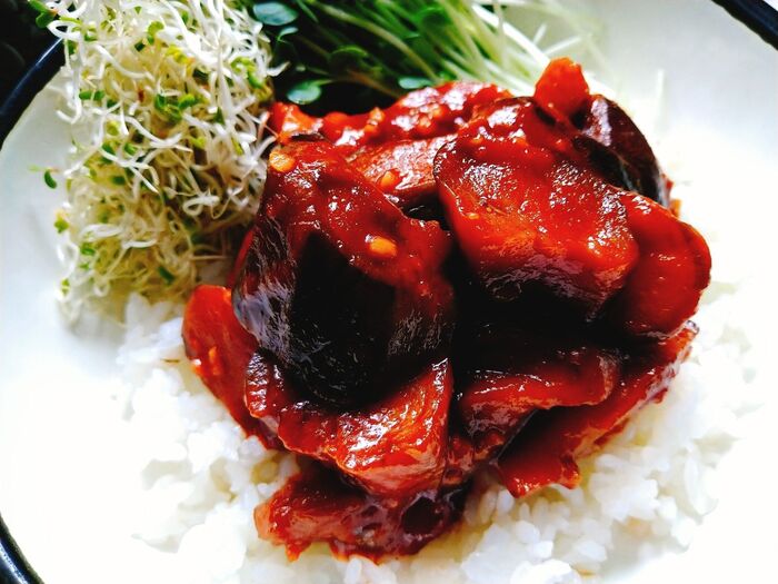 4.なすが油を吸って全体に焼き色が付いたらAを加えて絡めながら炒めて完成