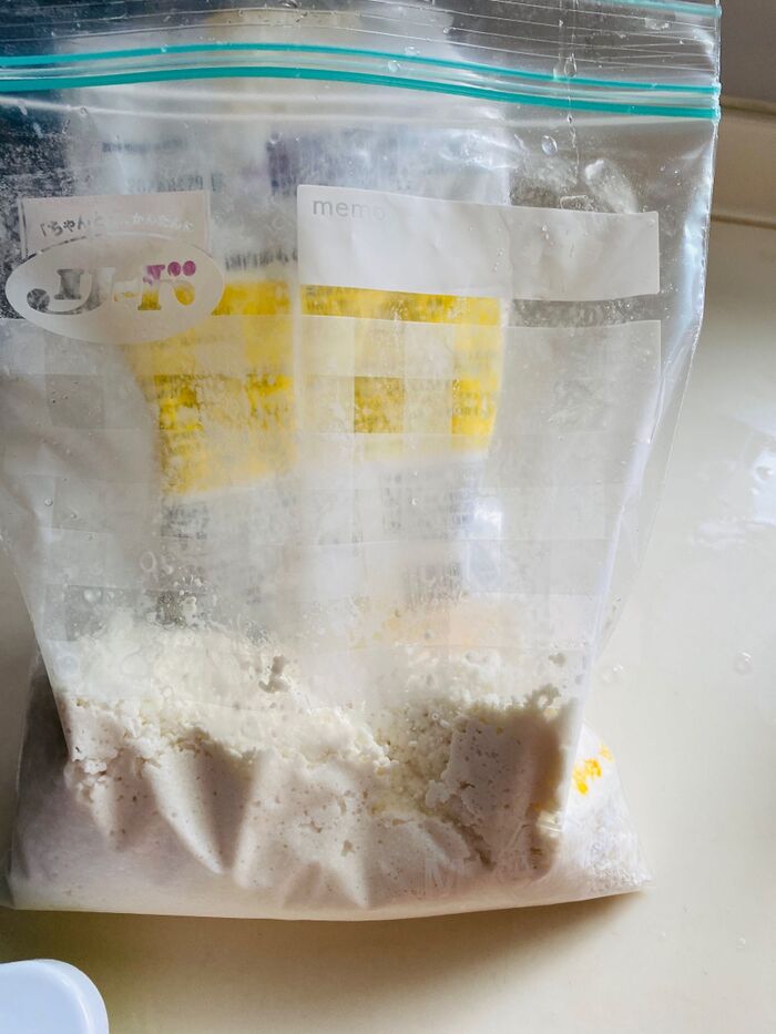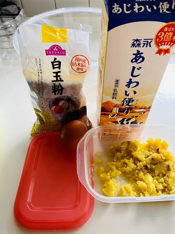 ビニール袋に白玉粉、牛乳、マッシュしたさつまいも、卵黄、砂糖を入れよくモミモミします。