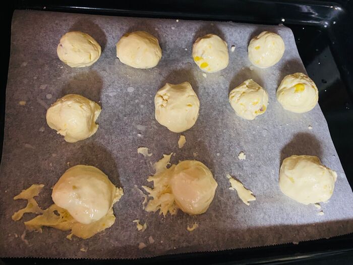 丸く形を整え、予め温めておいたオーブン180度で20分ぐらい焼きます。