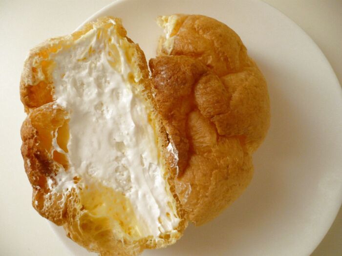 真ん中で切ってみるとびっくり!シューの中は底の方と上にはカスタードそして、北海道産練乳を使用したミルキークリームがぎっしりです♪「ひかえめに言う」から逆に余計にクリームが多いように思います(笑)カスタードのもホイップクリームもとっても美味しかったです☆今日はシュークリーム食べた♪って大満足のスイーツでした。