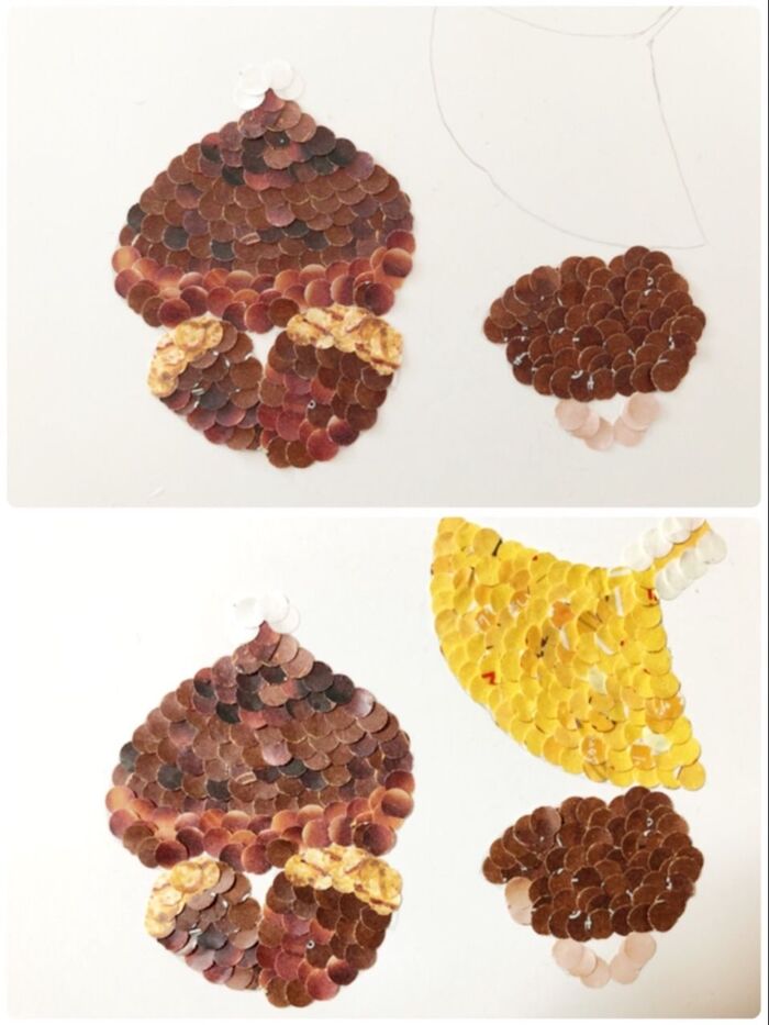下絵を描き、黒い包装紙を重ねながら ひたすら貼っていきます。