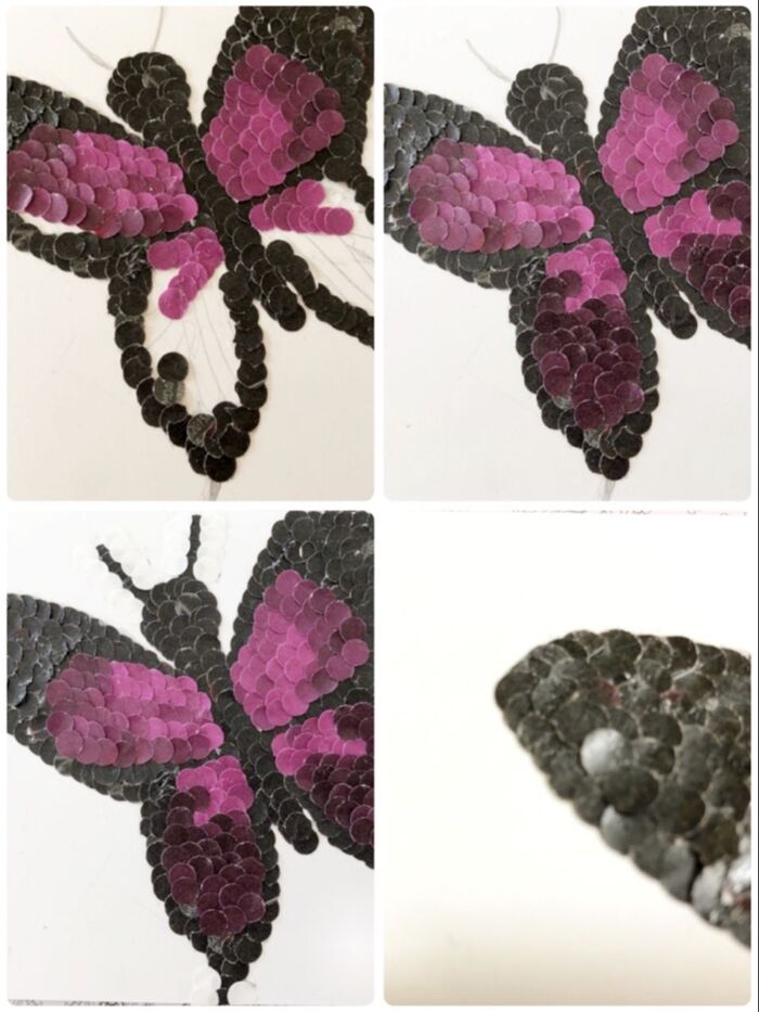 紫の包装紙は3色用意し、貼っていきます。