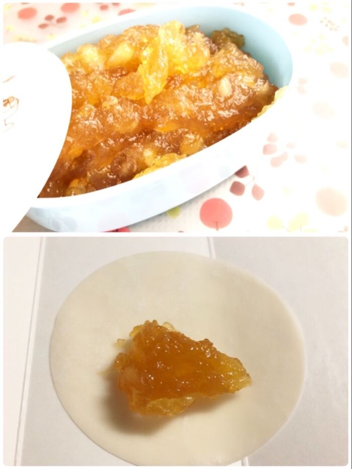 餃子を作るようにジャムを皮の真ん中に乗せます