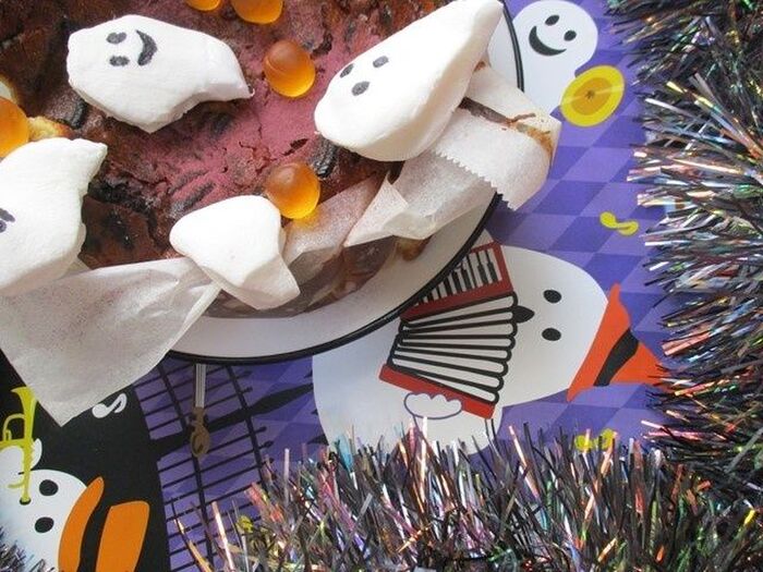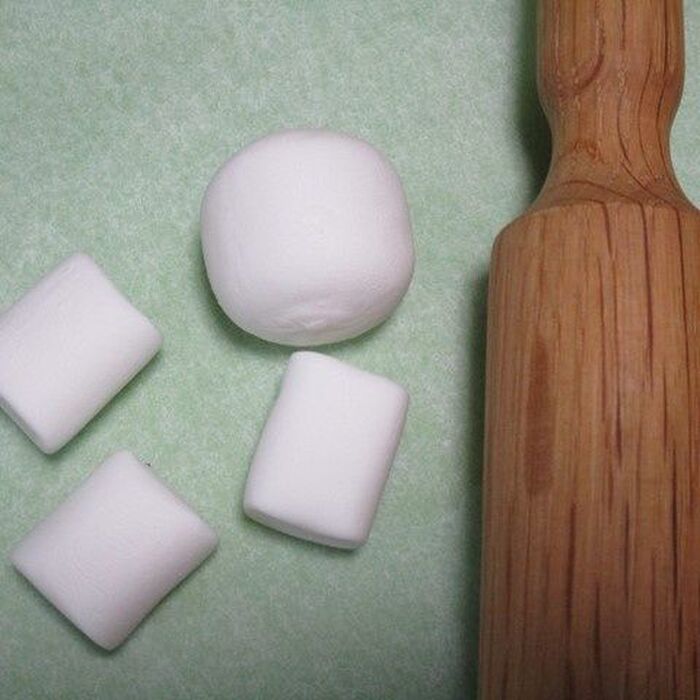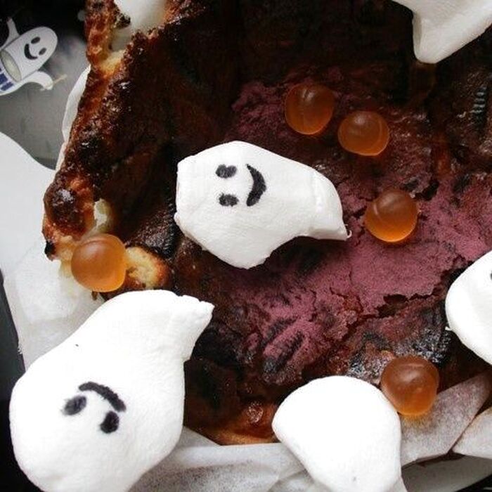 めん棒でマシュマロを伸ばして、おばけモチーフにカットして、フードペンのブラックで