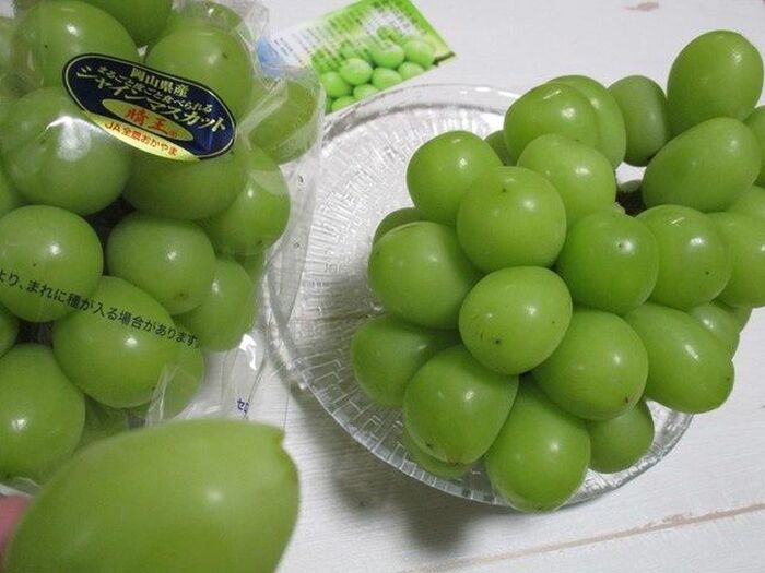 シャインマスカットは、皮ごと食べられます。大きければ、半分にカットします