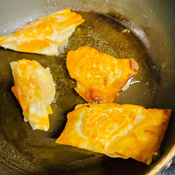 餃子の皮に熟れた柿がハミでないように包みました。